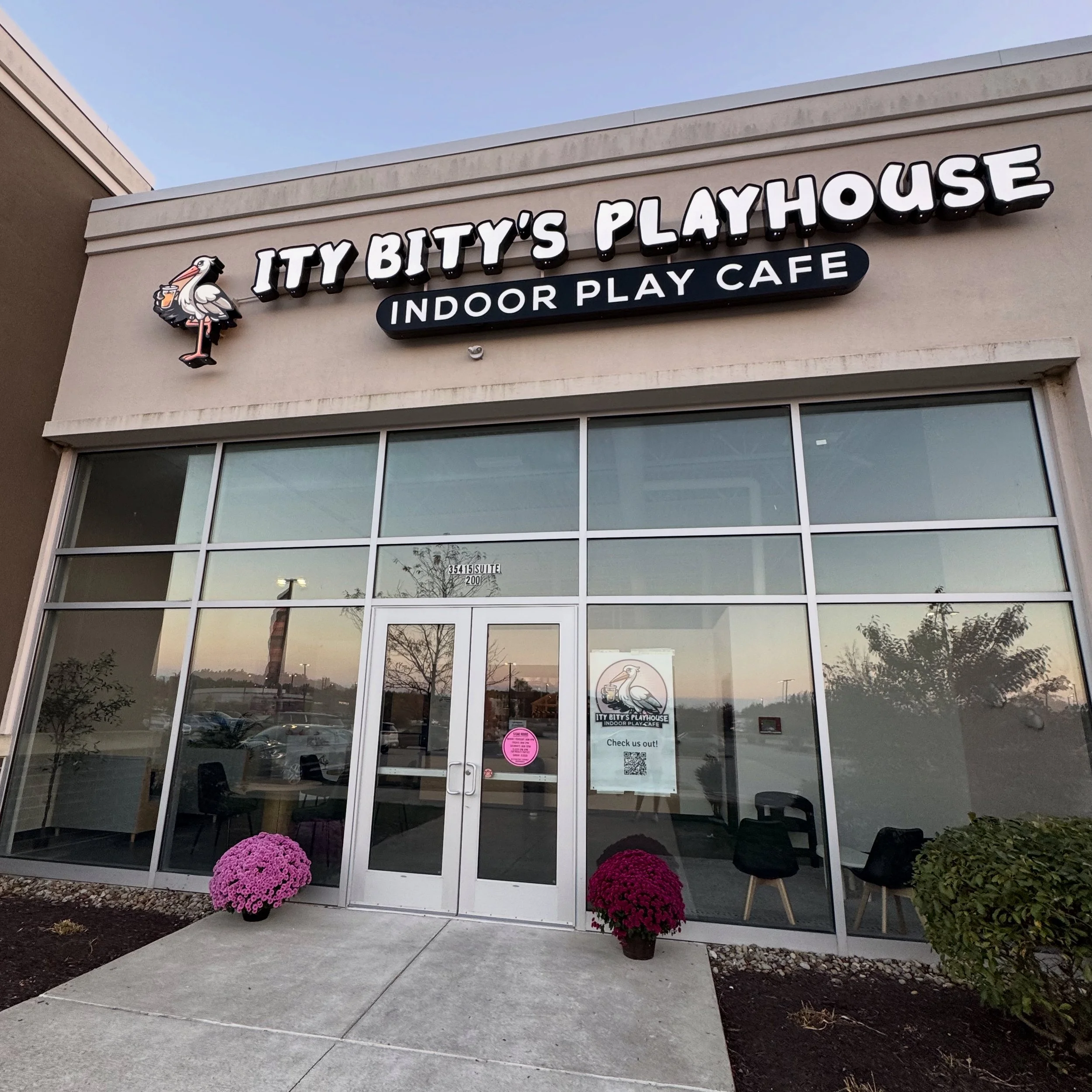 Here at Ity Bity’s Playhouse we encourage parents to relax, grab a cup of coffee & even catch up on some work while your children explore & play safely in our playhouse. Grab some goodies from the Stork Cafe & let those kiddos make lifelong friends.
